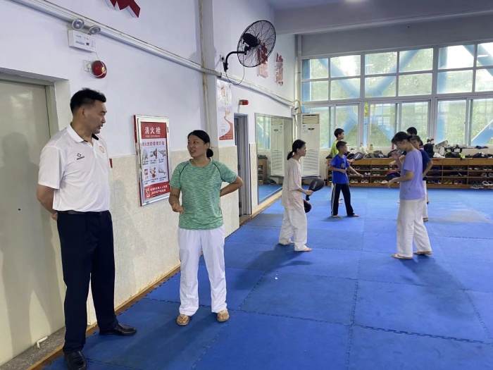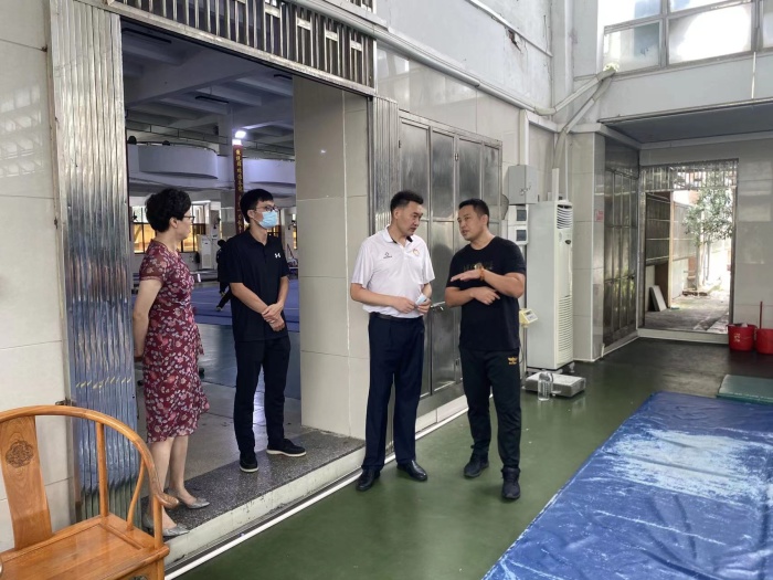 7月6日上午,中山市教育和体育局副局长陈威莅临中山市体校,慰问已经进入最后冲刺阶段,正在奋力备战的各参赛项目队伍,为运动健儿们加油鼓劲。中山市体育运动学校副校长邓小涔,训练处主任梁胜华一起陪同走访了各训练场馆。