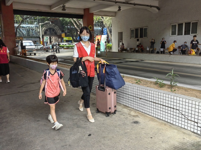 清晨7:45分,党员志愿者们早早来到校门口,为返校学生提供“一站式”服务。党员志愿者在校门口负责引导学生有序排队、测温入校园,并引导学生至各班主任处报到,同时协助搬运行李送至宿舍,全程一站式引导学生快速完成入校。