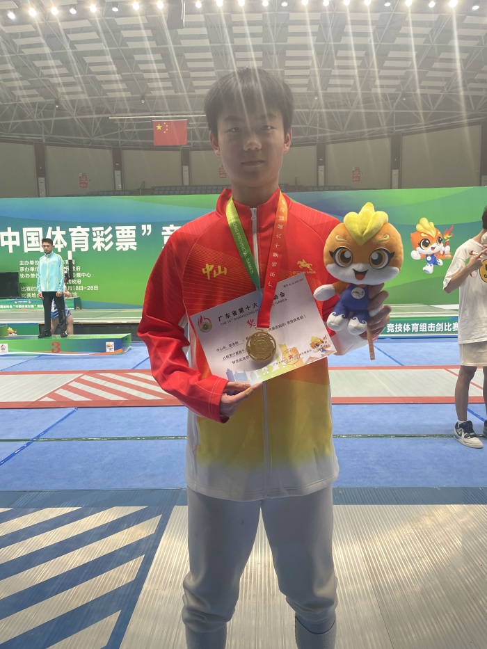 陈立业凭借强大的实力和十足的信心在省运会一路过关斩将,以速度、力量的优势在决赛15:4大胜深圳队的对手,获得本次乙组佩剑个人赛的冠军。陈立业是一名“中山-广州”联培运动员,在赛后,他感谢了梁教练(中山)和张教练(广州),“这一路都很不容易,是两位教练带着我从无到有,让我的实力突飞猛进。”