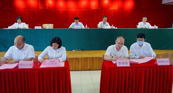黄圃镇党委委员李华军和新一届中小学校长(园长)代表签订了廉政建设责任书。
