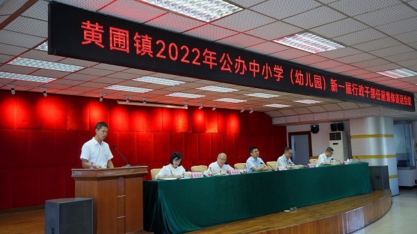 为加强教师干部队伍建设,以教育高质量发展支撑经济社会高质量发展,7月21日上午,黄圃镇召开2022年公办中小学(幼儿园)新一届行政干部任前集体谈话会议,要求坚定理想信念、乐于奉献、发扬高尚师德、发挥卓越师能,成为深入教育教学改革、提高全镇教育教学质量的中坚力量。