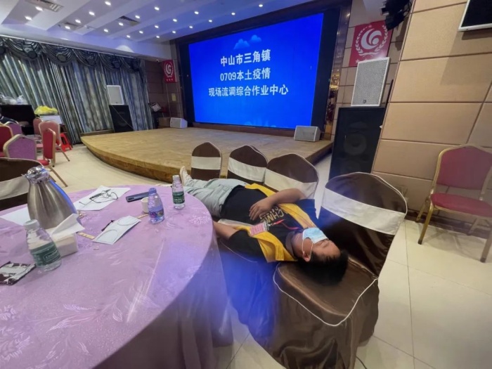 “没关系,我还年轻,我能扛住”!光明小学彭仁琪老师笑着说。7月9日晚上10点接到紧急任务,在毫无准备的情况下,他义无反顾地前往转运专班调度中心工作,在此期间,通知密接人员提前收拾生活用品以及协助医护人员转移密接者成为了他的工作。因任务繁忙,他连续熬了几个晚上,通宵奋战,打电话打累了,偶尔眯会来缓解疲惫。但即使这样,他也毫无怨言,拖着疲惫不堪的身躯,也无法阻挡他抗疫的步伐。