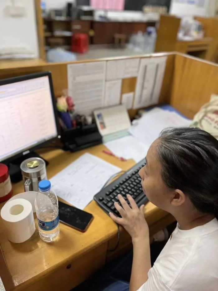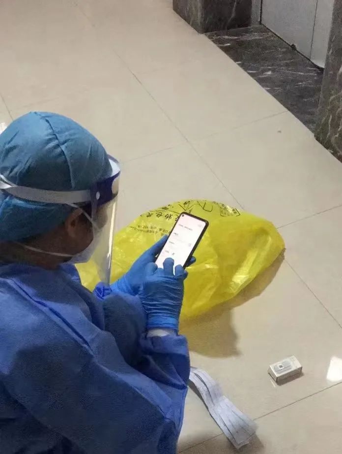 周珊妮老师,一位年轻的90后,跟随三人小组入户,从晚上10:00开始,到凌晨4:30,历时6个半小时走访,是当晚走访任务最重的一个组。由于天气太热,穿着厚实的防护服,周珊妮老师差点晕倒在走访入户的路上。但她没有放弃,稍作休息后,继续和大队一起坚持完成任务。