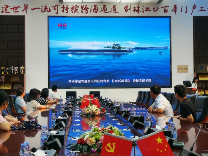 会议结束后,党员同志一起乘车到中铁大桥局集团有限公司深中通道项目S07合同段项目部进行考察学习,大家观看了深中通道、中铁大桥局集团宣传片,座谈交流党建工作开展情况等。大家对深中通道项目建设期临时党总支部的搭建模式印象非常深刻,体会到党建与业务相融合是推动工作的强大动力,临时党组织的建立有助于进一步有效整合资源,营造浩大的规模效应,为打造百年门户工程发力,具有重大而深远的意义。