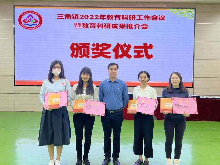 为扎实做好2022年全镇教育科研工作,促进省、市、镇教育科研成果的转化与推广,进一步提升全镇广大教师的教育科研能力,推动科研兴教、科研强师工作,11月24日上午,三角镇在中心小学举行2022年教育科研成果推介会。三角镇教育和体育事务中心梁文副主任、三角镇中心小学吴博事校长、中心小学李红娣老师、三角中学陈秀君老师、三角中学李建华老师以及获得省市镇科研成果奖(小学阶段)和2020年度市镇级立项课题(小学阶段)的主持人参加推介会。本次会议主要议程为省、市、镇科研成果获奖课题主持人颁奖、优秀科研成果推介、专家点评和专题讲座。