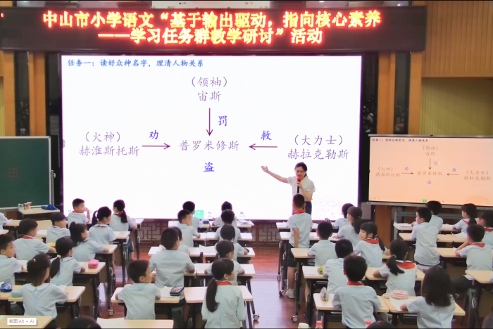 课堂展示环节,由12位来自各镇街的青年骨干教师带来小学语文低、中、高三个学段,包含童话、神话、散文、小古文等文体课例共12节。老师们以学习任务群为主要抓手,以输出驱动理念为核心,创设学习情境,设计一个个环节紧凑的学习任务,让学生在课堂中真正地“动起来”、“学起来”。
