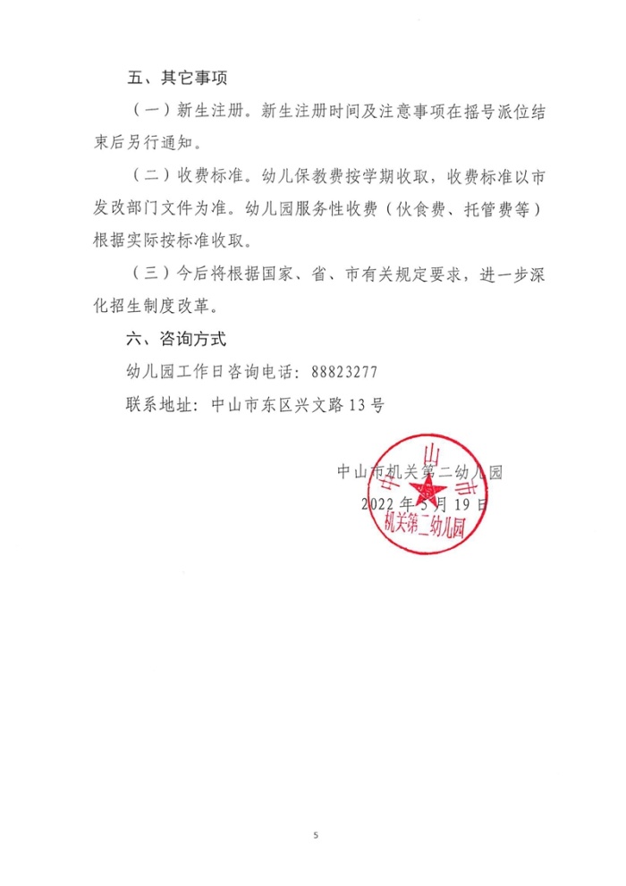 2022年秋季学期中山市机关第二幼儿园招生简章
