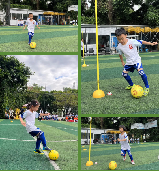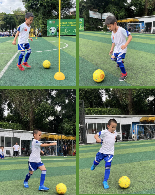 热身游戏环节,蚂蚁搬豆、铃儿响叮当、小小搬运工、夺宝接力赛四个项目考验着足球小将们的运球和控球能力。瞧,小将们精神抖擞、势在必得!一个多月的刻苦训练,让他们动作敏捷连贯,足球在他们脚下听话地迅速滚动,小小的热身项目可难不倒他们!