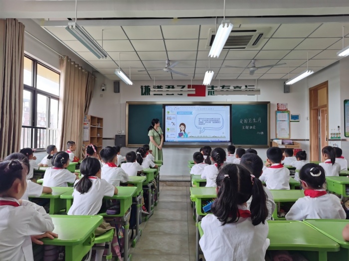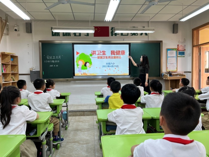 4月25日,学校还组织各中队开展 “讲卫生 我健康” 爱国卫生月主题班会。在班会课上,各中队辅导员结合当下疫情防控要求,向同学们介绍了爱国卫生运动的由来,阐述了为什么要做好环境卫生、怎样做好个人卫生与班级室内外卫生等问题,引导同学们从日常的生活和行为习惯做起,讲文明,讲卫生。老师组织同学们认真学习,倡导同学们进行宣传,让爱国卫生月活动深入到每个家庭,做到家喻户晓,共同参与。