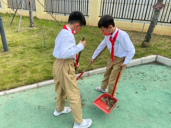 4月的每周一下午,在各班中队辅导员的带领下,同学们纷纷化身“环保小卫士”,分工合作,手拿扫把、垃圾袋,积极热情地参与其中,一丝不苟地清理着塑料袋、纸屑、树枝等垃圾。在校园清洁活动中,同学们不怕苦不怕累不怕脏,一个比一个干得有劲,仔细地把各个角落里的垃圾清理干净,留下了一个个最美的背影。此次活动不仅树立了劳动意识,同时引导同学们爱护环境,为美丽校园奉献自己的力量。