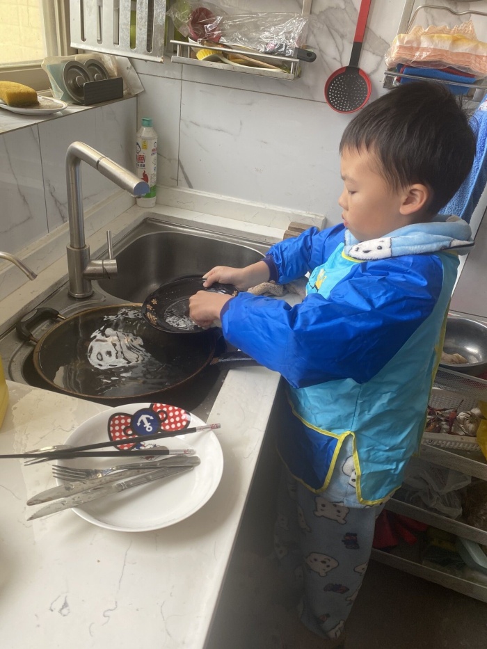 瞧,一、二年级的小同学,人小但劳动热情却很高,有些同学帮家里扫扫地,擦擦桌子;有些同学自己叠衣服,把小衣柜整理得井井有条......三、四年级的同学们劳动的本领就更大了。看,有些同学自己打扫好房间卫生,收拾得干干净净,整整齐齐;还有些同学吃过晚饭主动帮妈妈洗碗、擦桌子、拖地......五、六年级的大哥哥大姐姐们学着爸爸妈妈的样子做起了小厨师,游走在厨房这片小天地,乐此不疲,一道道美味佳肴新鲜出炉,看得人直流口水呢......劳动强度虽然不大,却极大地减轻了父母的负担,孩子们也从中享受到了劳动的成果和喜悦。