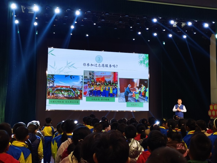 邓龙主任围绕社会主义核心价值观的学习、志愿者服务、党史学习研学活动、预防校园欺凌等几个方面开展创建文明校园教育,动员全体师生积极参加社区各类志愿服务活动和研学实践活动,为社会传递爱心。除此之外,火炬第八小学还把文明建设主题活动延伸到家庭和社会,影响和带动家长积极参与到活动中,积极开展“一盔一戴”安全守护活动,预防和减少道路交通安全事故发生,提升群众驾乘摩托车电动车佩戴头盔的意识,深入贯彻落实学党史、跟党走,我为群众办实事教育理念,为学生家长生命安全保驾护航。
