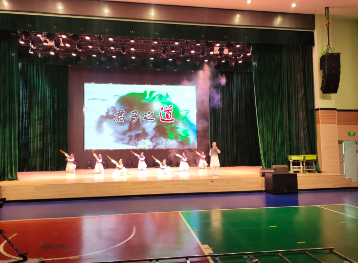 课后,督导组一行来到学校体艺馆,伴随“菁菁者莪,在彼中陵。既见君子,锡我百朋”的吟唱,一场典雅且余韵悠长的中华传统文化展演拉开了帷幕。经典吟诵《梅花魂》《梅花吟》以洋洋盈耳的深情诵让在场的每一个人都感受到传统文化的无穷魅力。