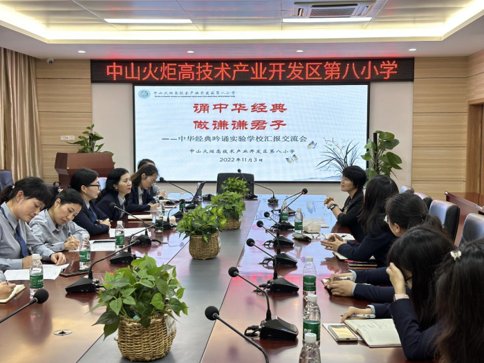 “诗者,吟咏性情也。”吟诵作为我国非物质文化的代表作,有着三千多年的悠久历史,它对于传承发展中华优秀传统文化具有重大的意义。为了贯彻落实习近平总书记关于继承和弘扬中华优秀传统文化的重要讲话精神,落实中山市中华优秀传统文化教育工作,11月3日下午,火炬第八小学作为“中华经典吟诵实验学校”,迎来了中山市教研室传统文化教研员林晓洁老师、南区街道教育和体育事务中心教研员李亚利老师一行的调研督导。