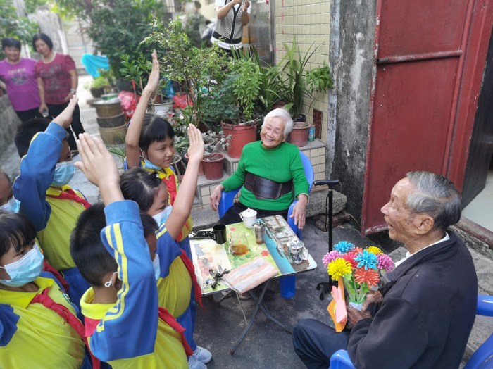 10月13日下午,在党员教师、中队辅导员杨赛男老师的带领下,火炬八小“梅花朵朵”三5中队的队员们走进大环村,来到老党员家中进行慰问活动,在建队日这个特殊的日子里,为老党员送去祝福。队员们将慰问品及自己做的小手工作品送给老党员,向老党员致敬。老党员们见到少先队员们非常开心,拉着孩子们的手亲切询问在校的学习生活,并为他们讲述年轻时抗战中英勇奋战的光辉事迹,为队员们上了一堂生动的革命历史课。