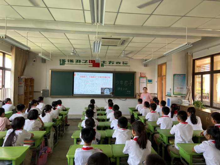 据邓主任介绍,为培育、践行社会主义核心价值观,深化学校“君子教育”的办学思想,涵养“清、正、美、雅、和”的君子品格,培养谦谦君子,火炬八小结合少工委“红领巾争章”活动纲领开展了“学做君子,你我能行”红领巾争章行动。在表彰大会上,邓龙主任总结了上学期学校“学做君子,你我能行”红领巾争章行动的情况,并解读本学期争章行动计划与要求。其中,邓主任详细说明了取得“少年君子”特色章的必要条件,阐明了“梅、兰、竹、菊”四君子章分别对应的人格塑造及相对应的践行内容。学生在践行中,深化对君子精神的理解,让德智体美劳全面发展。