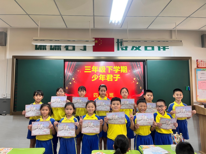 经过了一学期的努力,不少同学成功获得了“少年君子”称号。在直播中,邓主任宣布了火炬八小第四批“少年君子”奖章获得者的名单,并向他们表示祝贺,希望他们继续努力,展现少先队员积极向上的精神风貌,在学校各项活动中继续发挥模范带头作用。小小奖章汇聚大大的能量,此次表彰大会为少先队员们树立了榜样。在党的带领下,在星星火炬的照耀下,在红领巾奖章的激励下,火炬八小全体少先队员将努力培养君子品格,学做谦谦君子,立志向、修品行、练本领,争做新时代好队员,努力为实现中华民族伟大复兴的中国梦时刻准备着!