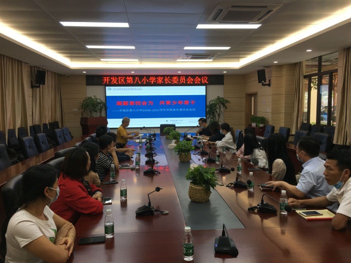开发区第八小学2020-2021学年学校家委会会议于11月25日在学校116会议室胜利召开,学校董伟文副校长、学生服务室邓龙主任和16位班级家长会主任一同参加,共商家校发展大计,共同为孩子健康成长助力。