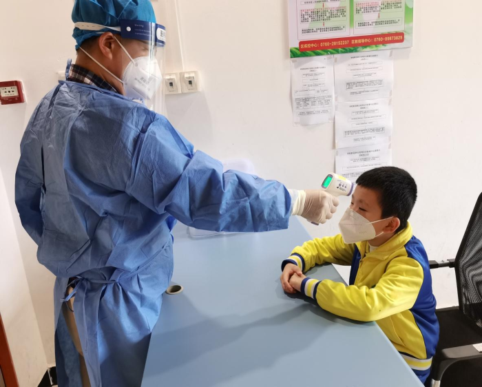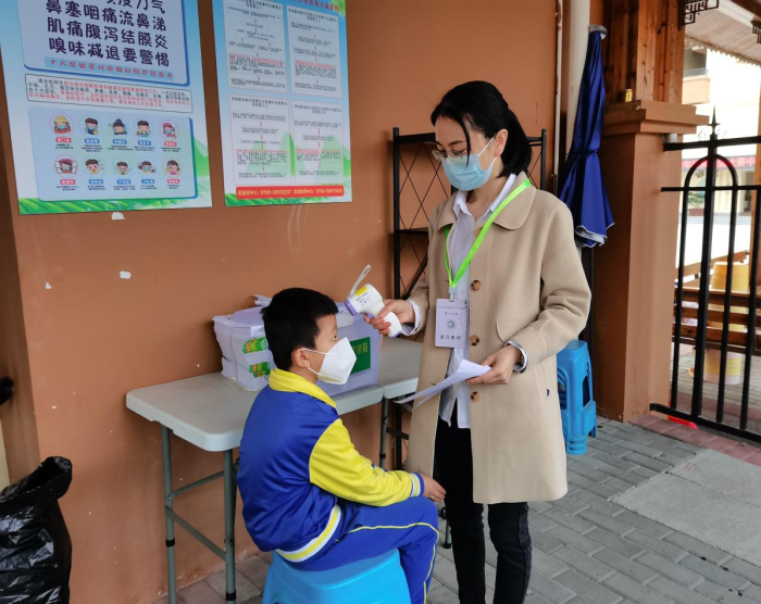 根据演练方案,本次晨检发热情境应急演练按照校内处置、校外各部门协调沟通、及时上报上级部门等环节进行。情境演练模拟入校时一名学生体温异常并伴有咳嗽症状,通过排查学生疑似新冠核酸检测结果为阳性的整个应急处理过程。在演练过程中,各个环节参与演练的人员依照学校制定的方案,严肃认真、紧张有序地进行,达到了预期效果。