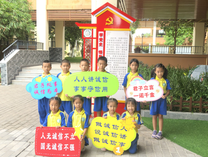 君子立言,一诺千金;君子处事,诚信为本。诚信是中华民族优秀传统美德,是做人立身立德之根本。为弘扬诚信立德之风,营造“做诚信人、说诚信话、做诚信事”的校园氛围,根据中山市教育和体育局关于开展“诚信宣传进校园”活动的要求,结合八小“君子文化”办学特色,火炬开发区第八小学于9月23日开展“喜迎二十大 诚信伴成长——诚信宣传进校园”教育活动,教育学生做到知行合一,使诚信观念扎根校园,深入人心,以实际行动迎接党的二十大胜利召开。