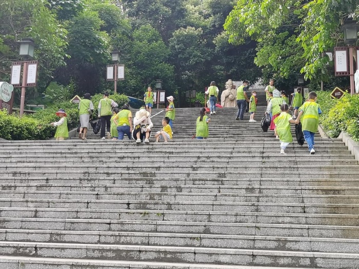活动过程中学生和家长们不怕累、不怕脏,手持铁夹、扫把等清扫工具,沿华佗山公园清理树叶、杂草、塑料袋、砖瓦石块等垃圾。虽然天气炎热,但大家干得十分起劲,从山脚下一直清理到山顶,经过一个多小时的努力,整个公园变得更加干净整洁,整体环境面貌有了明显提升,路过的市民纷纷向他们竖起了大拇指,对他们放弃个人休息时间,投身公共环境卫生清理表达了由衷的感谢和敬佩。