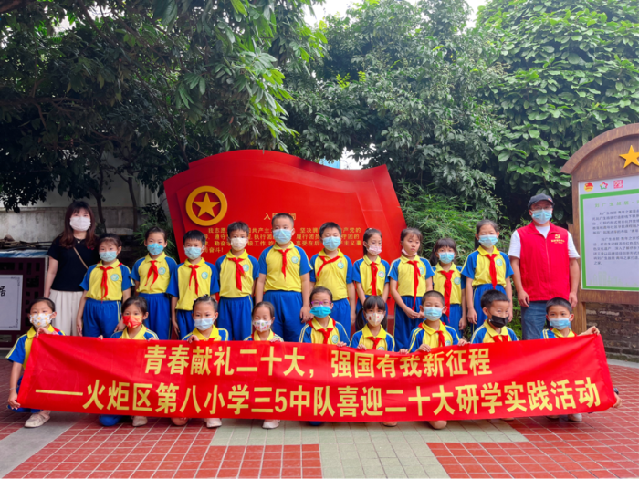 为迎接党的二十大胜利召开,深入贯彻落实习近平新时代中国特色社会主义思想,引导队员们自觉从党的重大成就和历史经验中增长智慧,增强信心,用青春唱响“强国复兴有我”的时代强音,在第八小学党支部的指导下,5月22日上午,火炬区第八小学大队部开展喜迎二十大研学实践活动,以三5中队为代表的队员们深入挖掘中山本土红色教育资源和红色革命遗址,汲取奋进力量。