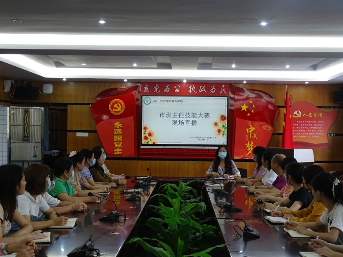 为了提高班主任的综合能力,积累比赛经验。2022年5月6日上午8时,开发区第二小学组织26位班主任齐聚在奋进楼会议室在线观摩中山市第七届班主任专业能力大赛,学校分管德育的冯丽芬副校长、黄桂芬主任全程参与本次培训。
