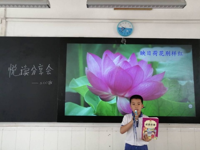读书节期间,学校开展了读书漂流活动,各班语文老师将学生捐赠的图书放在学校悦明轩图书长廊供全校师生交流分享。四到六年级的学生还利用红领巾校园广播进行经典篇目的播报,一起分享阅读的乐趣。在世界读书日当天,孩子们与家长共读一本经典好书,共建“书香家庭”。