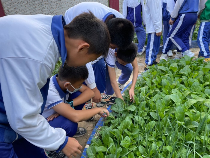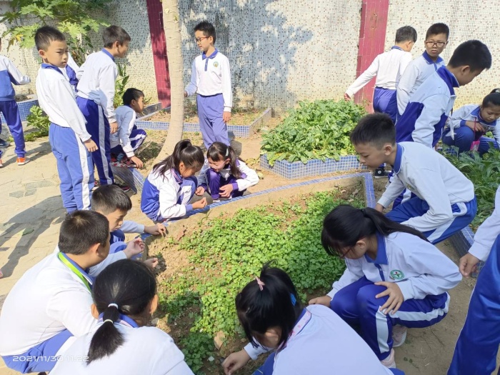 学校开展了“劳动最光荣”主题活动课,以人民群众通过劳动创造美好生活等真实事例渲染“劳动最光荣”的校园气氛,从而培养学生尊重劳动、热爱劳动、尊重劳动人民的品质。其次,通过开展教室大扫除、擦拭桌子、物品收纳等课堂活动,让孩子在劳动中既动手,又动脑,在老师的帮助下克服困难,培养创造意识和精神。同时,充分挖掘和发展校内资源,带领孩子到劳动教育实践基地——“绿趣园”开展除草、种植等户外活动,并向学生传授相应的农业种植知识,开阔学生眼界,在劳动中学习,在劳动中创造。