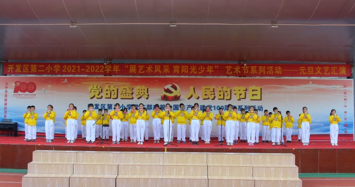 为迎接2022年新年的到来,弘扬健康向上的校园风貌,丰富校园文化生活,展现师生风采,提高学生的综合素质,2021年12月31日下午开发区第二小学开展了以“展艺术风采,育阳光少年”为主题的艺术节系列活动暨元旦文艺汇演活动。