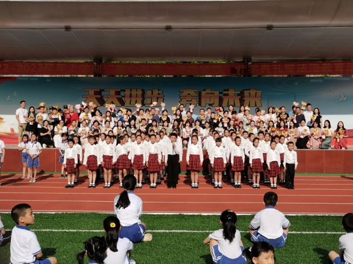 活动在全体学生倾情合唱歌曲《听我说谢谢你》中结束。歌声洋溢温暖,歌声充满恩情。孩子们用稚嫩的歌声唱响了祝愿,异口同声的歌唱,让校园弥漫着深情。在美妙的歌声中,少先队员手捧鲜花,微笑敬礼,真挚祝福,向全体教职工传递了莘莘学子们最真诚的心意。