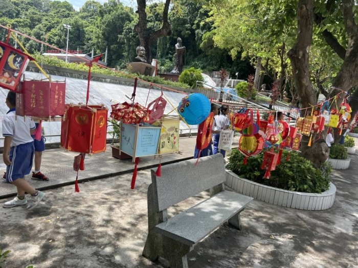 在这个特别的日子,学生们自制贺卡,手写祝福向老师们传达自己的心意。还有的学生自制各具特色的灯笼,挂满了校园林荫小道,表达着对中秋佳节的传承及美好的节日祝福。