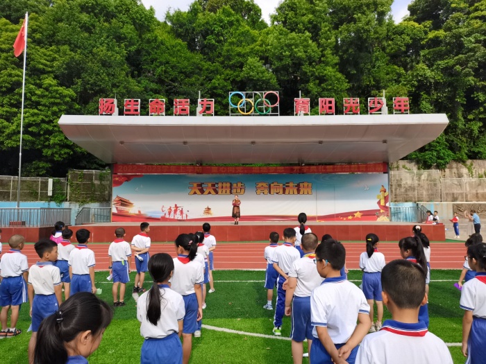 伴随着雄壮的国歌声,五星红旗冉冉升起,全体师生肃立注目,开学典礼拉开了序幕。一年级新生代表及六年级学生代表分别发言,新生代表陈子文表达了自己作为小学生,对未来的美好期望和憧憬。六年级学生代表岳沛廷同学号召大家树立远大目标,将把个人梦想融入伟大的中国梦,为校争光,为国争光。