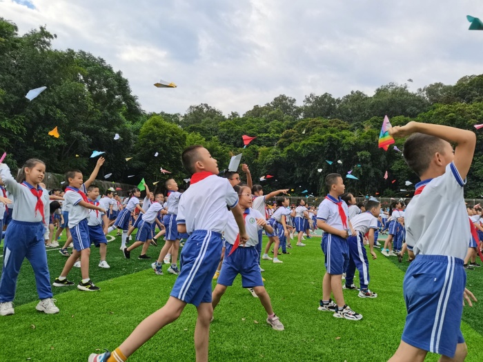 开学典礼的最后一个环节是“放飞梦想,向着快乐成长出发”放飞纸飞机活动,在冯丽芬副校长的带领下,同学们在“天天进步,奔向未来”的口号声中,将写有新学期目标的纸飞机放飞蓝天,带着美好的祝愿和希望开启新学期。