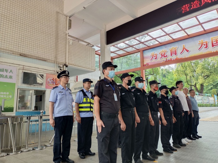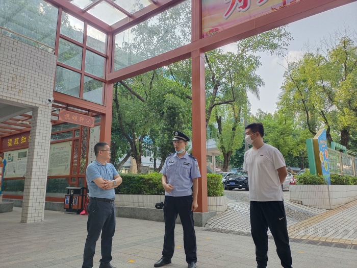 参加本次活动的主要人员有:张家边派出所、学校保安处、学校护校队成员。活动开始,郑康乐副校长首先代表学校对蔡成文警官等一行人表示了欢迎与感谢。蔡成文警官一行与学校安全负责人进行了深入的校园安全工作交流,并提醒相关注意事项,蔡成文警官表示会全力支持校园安全相关工作。