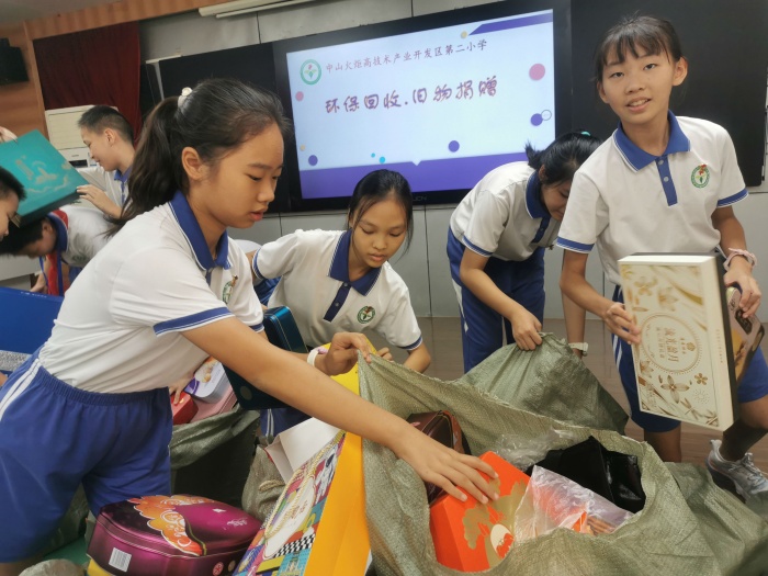 为贯彻落实习近平总书记关于生态文明建设的重要指示精神,提升广大青少年垃圾分类、闲置物品再利用的环保意识,充分发挥少先队员在环保、助困工作中的积极作用,结合中山市教体局团市委少工委关于开展第四期“青年拾分爱——环保回收,旧物捐赠”活动要求,开发区第二小学于9月13日开展了“环保回收,旧物捐赠”活动。本次活动由开发区第二小学少先队大队部发起,以班级为单位进行。