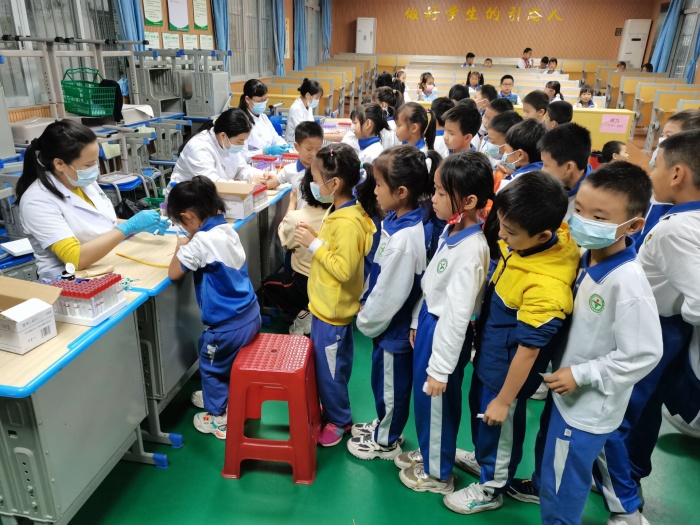 学校高度重视本次体检工作,后勤部门制定详细方案,班主任提前分发《学生体检表》,上课老师全程陪护学生完成体检,郑康乐副校长和值日行政现场指挥协调,协助医务人员维持体检纪律,确保学生安全。现场体检中,医务人员对每个学生进行了认真细致的检查,认真询问孩子以往病史,发现问题及时告知班主任并细致地说明解释,为学校及家长掌握学生健康状况提供了第一手资料。