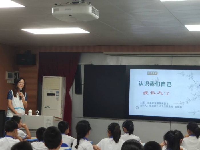 张家边社区卫生服务站杨晓珍护士利用短视频《丁丁豆豆的故事》,围绕青春期的生理特征、心理变化、如何自我保护、如何养成良好的学习生活习惯等方面为学生进行了详细、生动的讲解。讲座结束后,孩子们纷纷举手提出了自己的疑惑,如“男生没有变声期怎么办”“身高跟遗传有关吗”……杨护士循循善诱,有的放矢,帮助孩子们破解青春期带来的烦恼,教导他们学会自我保护,拒绝不合理的要求,及时寻求帮助,指导学生了解、正视自己的身体变化,以最佳的精神状态融入学习与生活当中。