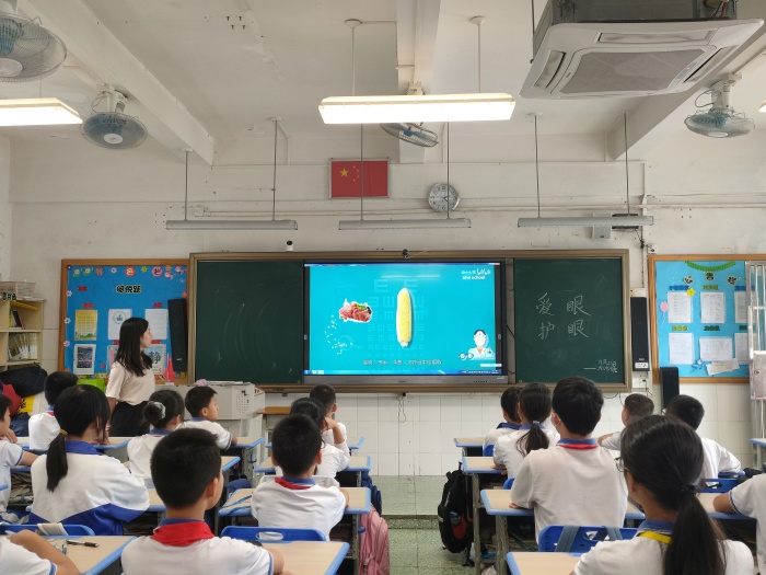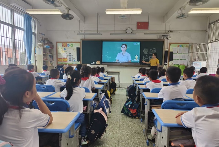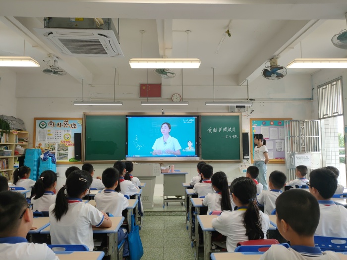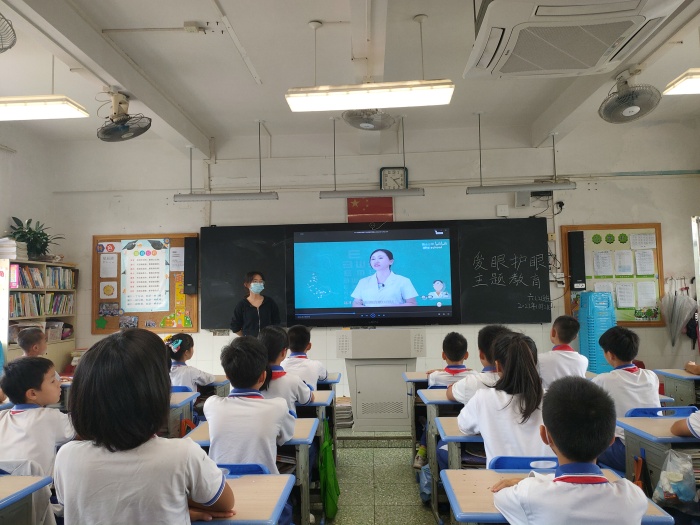 在班会课上,各班老师通过“爱眼护眼”知识普及视频课程,为全体学生详细讲解了如何科学用眼,如何预防常见眼疾病以及近视防治等有关知识,并指导学生保持正确读写姿势,改善用眼视觉环境。并用科学讲解鼓励学生要坚持做眼保健操,保证足够睡眠、加强体育锻炼、均衡饮食营养、定期检查视力等,培养学生的良好用眼卫生习惯。