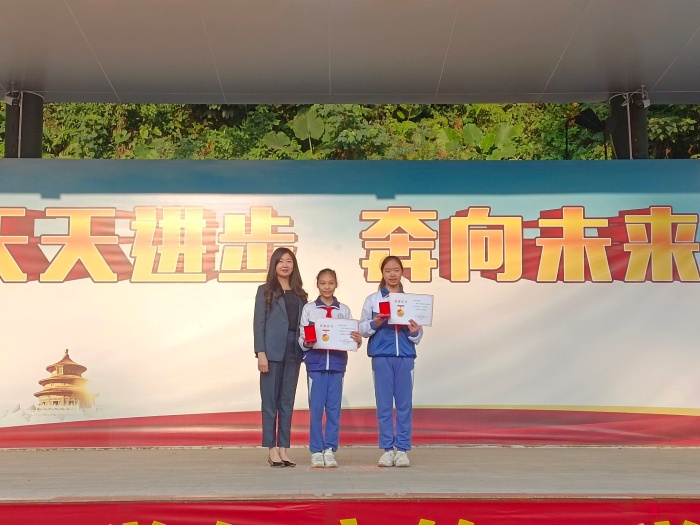 在过去的2021-2022学年度“红领巾奖章”评比中,学校共有3位队员获得个人四星章,24位队员获得个人三星章。活动伊始,大队辅导员陈一蕾老师宣读了获奖名单。