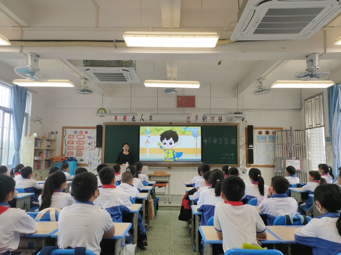 新学期伊始,正值春季传染性疾病高发时期,为了切实加强学校安全教育,增强学生安全意识和应对能力,有效防范安全事故发生,保障师生人身健康安全,确保学校平稳有序开学,2023年2月13日上午,开发区第二小学积极组织开展“春季开学安全第一课”专题教育活动。