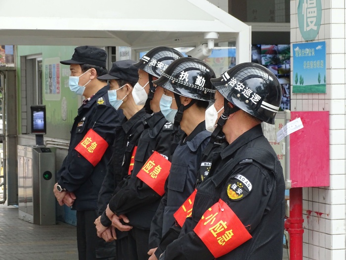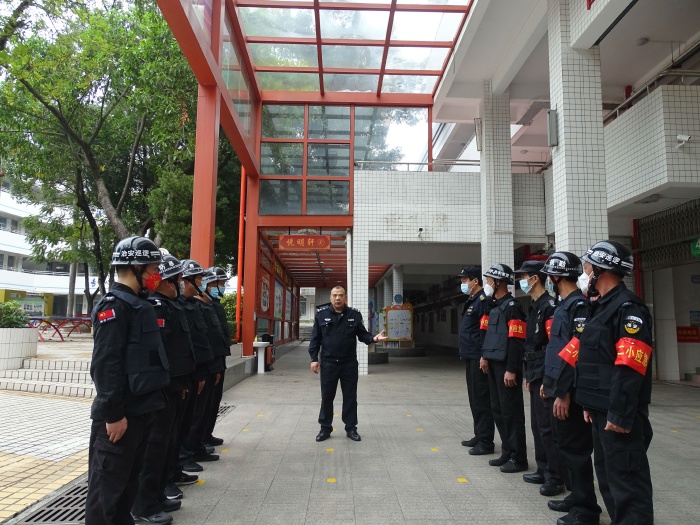 参加本次演练活动的主要人员有:张家边派出所民警、学校保安人员、学校护校队成员。活动开始,郑康乐副校长与朱亮副主任首先代表学校对肖友良警官等一行人表示了欢迎与感谢。肖友良警官一行与学校安全负责人进行了深入的校园安全工作交流,并提醒相关注意事项,肖友良警官表示会全力支持校园安全相关工作。