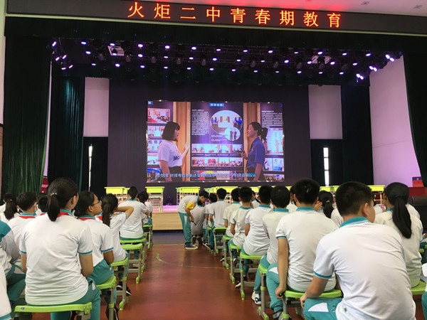 为了帮助处于青春期的中学生能够正确的认识自己在青春期存在问题并切实帮助他们解决问题。火炬二中于5月29日在体育馆召开了“厚德自强·我的花季不一般”的青春期教育讲座,讲座由火炬二中德育处杨泳春主持,全体师生到场参加。