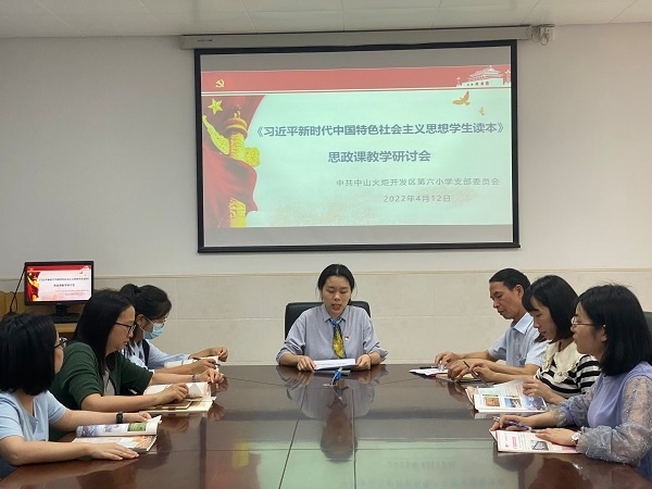 为深入贯彻习近平总书记在学校思想政治理论课教师座谈会上的重要讲话精神,进一步加强学校思想政治理论课教师队伍建设和思政课程建设,提高思政课育人实效,4月12日,开发区第六小学召开思政课专题研讨会,徐校长和全体思政教师参加了会议。本次研讨会由思政教研组组长曾珠老师主持,围绕《习近平新时代中国特色社会主义思想学生读本》(以下简称《读本》)教学工作展开。