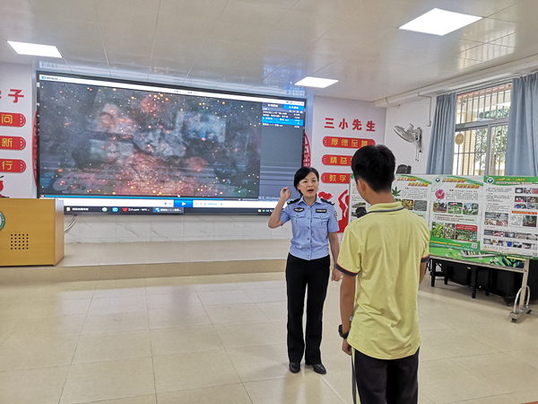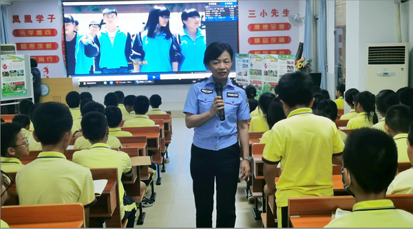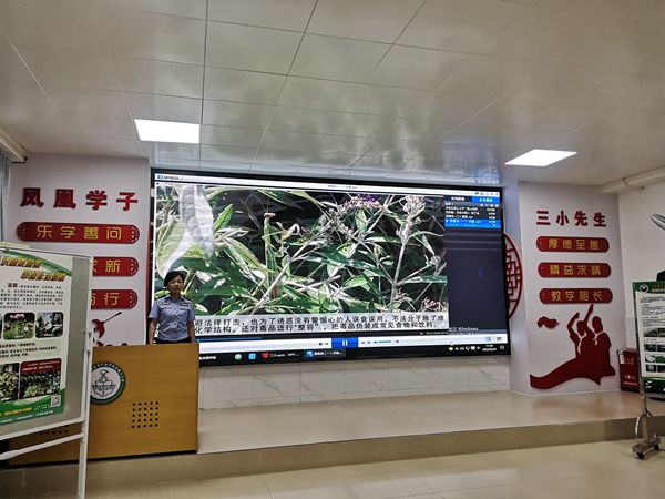 课堂上,雷警官根据学生心理特征分析,通过一个个视频让学生在从毒品的特征和种类、毒品对身体、家庭、社会的危害性。一个个真实生动的案例让人触目惊心,形象地告诉青少年一定要珍爱生命,远离毒品。为了让学生更深刻地理解,在每一个视频结果时,雷警官都给学生进行知识问答并奖励,巩固毒品防范意识,鼓励学生积极参与活动。