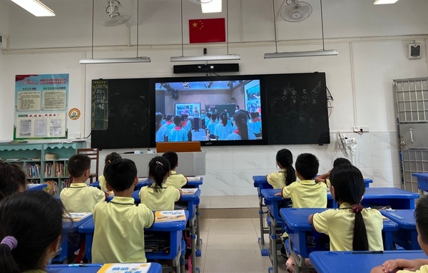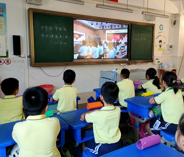 活动中各班老师组织学生观看由中山市教育和体育局主办,由广东省特级教师,中山市南头镇民安小学严玲珍校长主讲的“少年强 中国强”开学健康第一课直播。