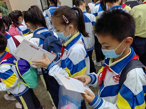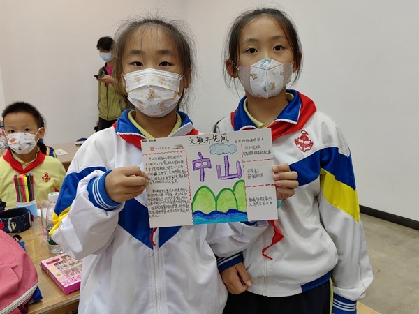 队员们认真聆听并仔细阅读文史资料、图片资料以及实物展品,边看边讨论,了解中山文教事业的发展历程,体会中山教育文化历史的深厚悠久。最后,队员们在“学在博物馆”研学卡中,通过书写、绘画表达自己对于教育的心得感悟。