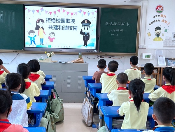活动中,老师们分别从什么是校园欺凌、校园欺凌的类型、校园欺凌的角色和危害、如何远离校园欺凌四个方面深度解析校园欺凌,向学生们讲解、普及相关知识。通过展示调查数据、讲解新闻报道以及组织观看视频等方式,让同学们明白,一旦遇到校园欺凌,要第一时间向老师和家长反映,绝不能忍气吞声,要敢于拿起法律的武器保护自己,坚决向校园欺凌说“不”。还要提高自身安全防范意识,有矛盾及时寻求老师帮助化解,上放学尽可能结伴而行,不和不法人员去偏僻的地方,面对可能发生的不法侵害时要在确保人身安全的前提下,尽快脱离危险环境,第一时间寻求学校或警方的保护。