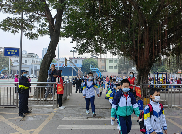 一大早,三小的老师们就守候在校门口,迎接学子们的归来。社区民警和身穿红色马甲家长志愿者们守护学生入校安全,入校秩序规范有序。