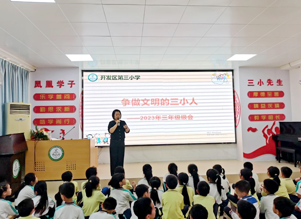 为推进文明校园建设,进一步提升学生的文明礼仪素养、道德品质和文明意识,积极构建和谐文明校园,2023年4月7日至5月5日,火炬开发区第三小学分年级开展以“争做文明的三小人”为主题的文明礼仪教育活动。